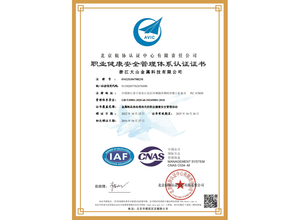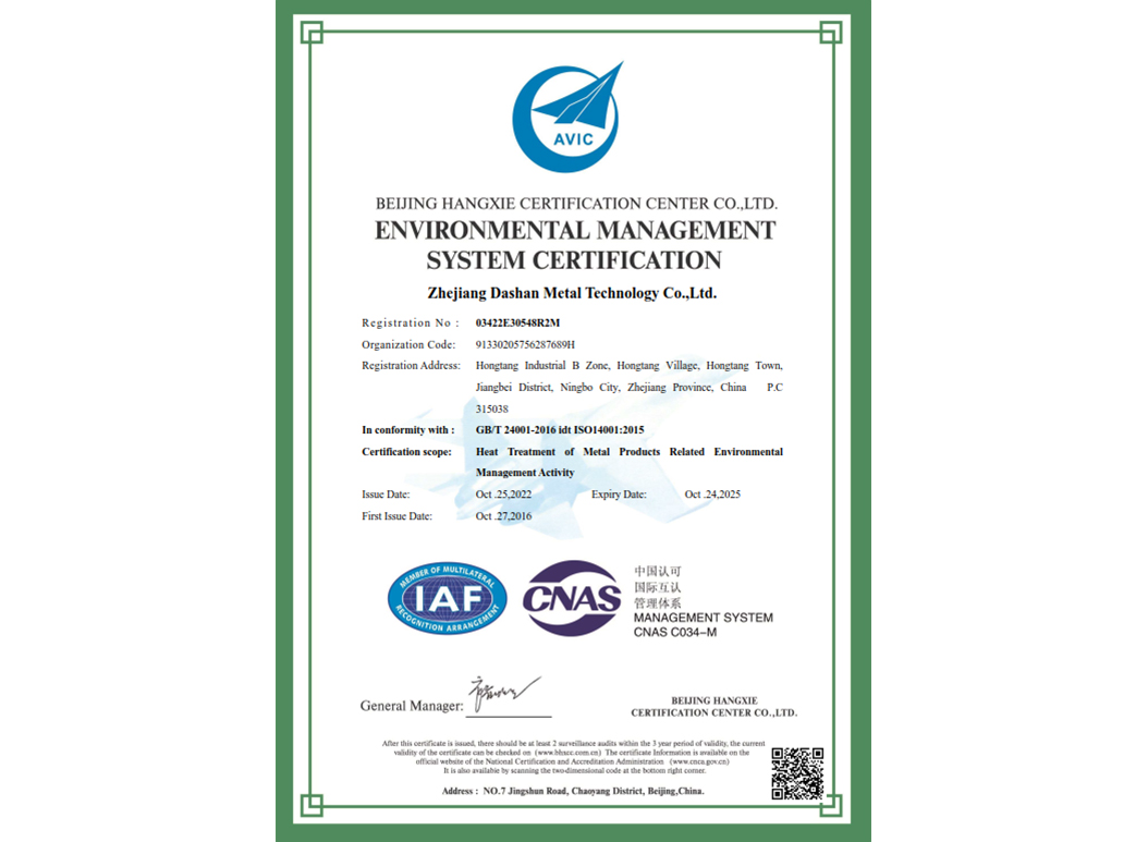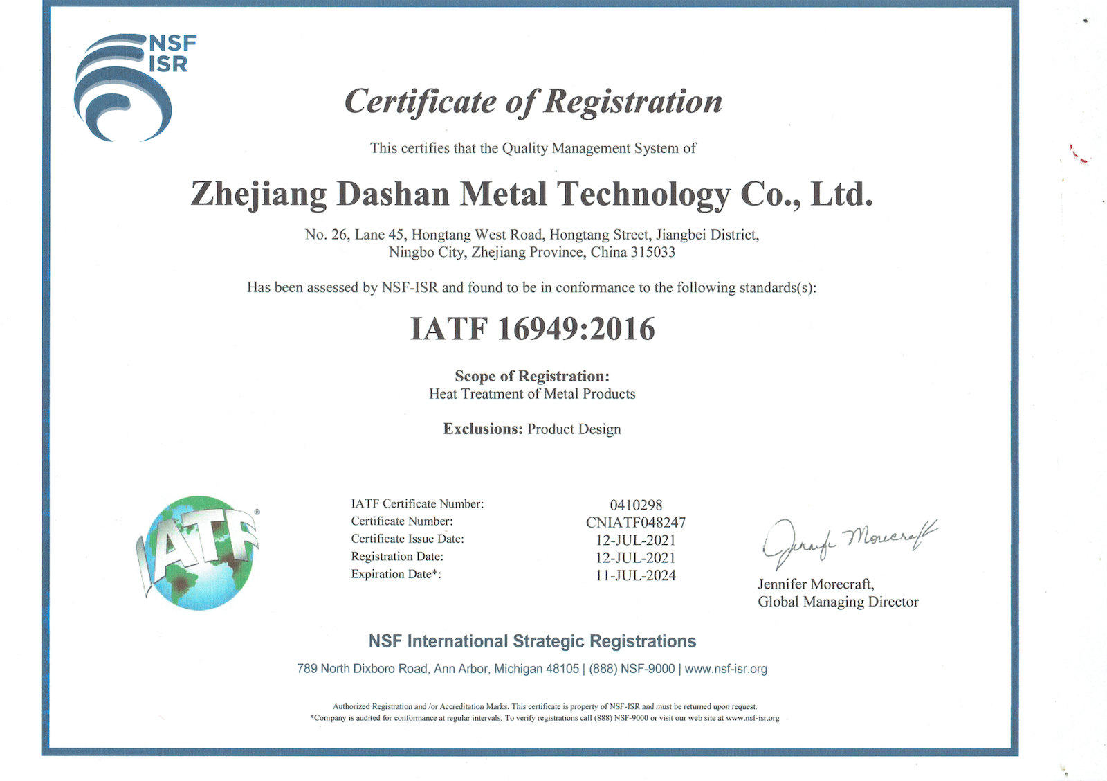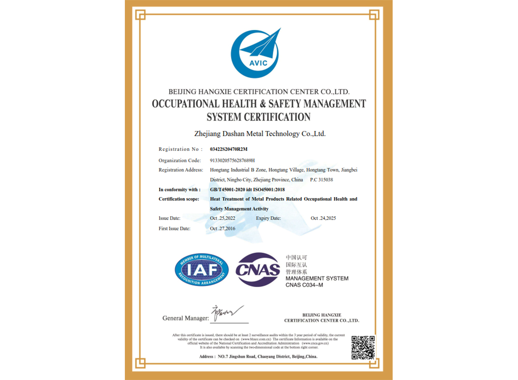經(jīng)過近35年來不斷引進(jìn)先進(jìn)的熱處理設(shè)備和技術(shù),使企業(yè)具備了雄厚的產(chǎn)品熱處理工藝開發(fā)和生產(chǎn)能力,在熱處理行業(yè)中取得了令人矚目的業(yè)績,在客戶中建立了良好的口碑。本企業(yè)已通過IATF 16949:2016 質(zhì)量管理體系、GB/T24001-2016 idt ISO14001:2015 環(huán)境管理體系、ISO 45001:2018 職業(yè)健康安全管理體系認(rèn)證,正全面貫徹執(zhí)行相關(guān)管理體系標(biāo)準(zhǔn),為客戶提供更有保證的全面服務(wù)。大山愿與各界朋友攜手共進(jìn),為提高熱處理質(zhì)量不斷努力!